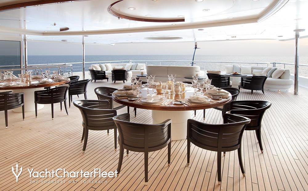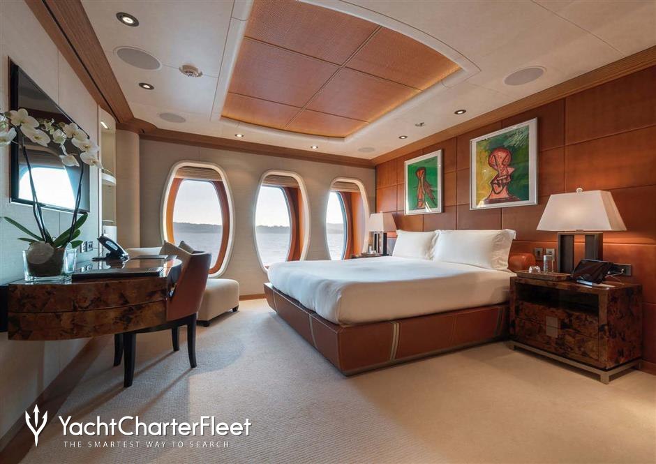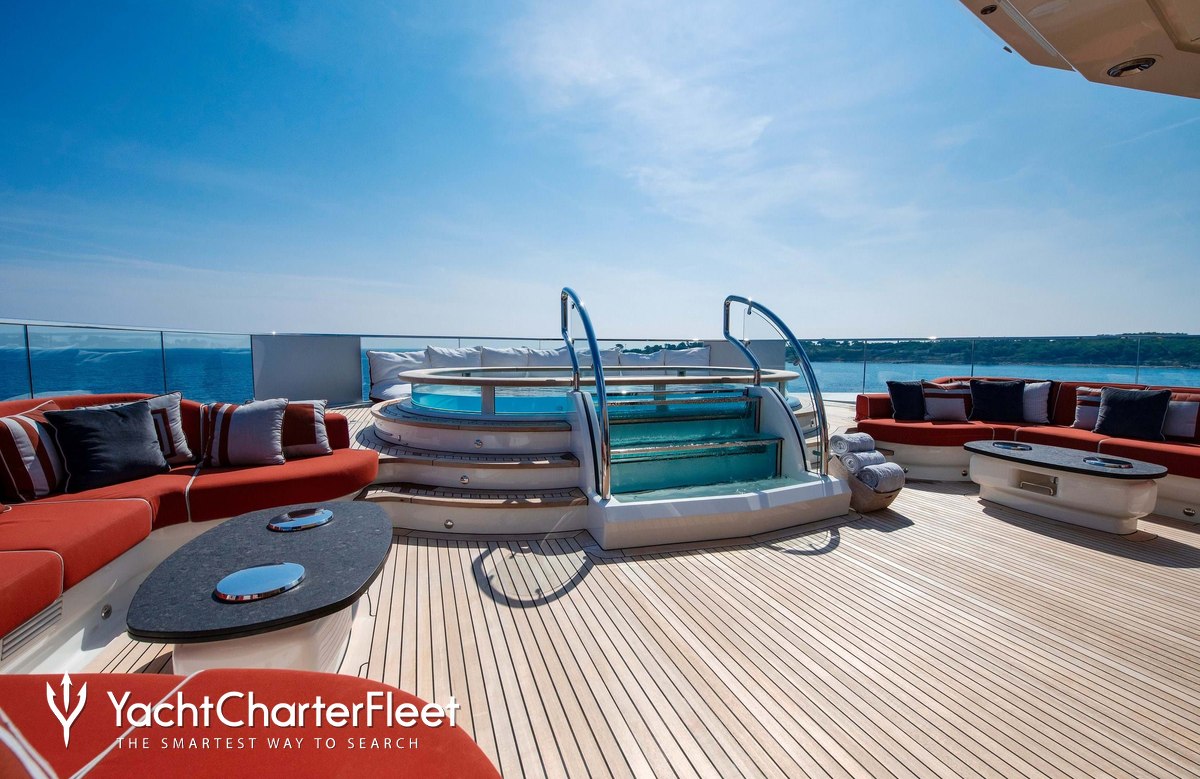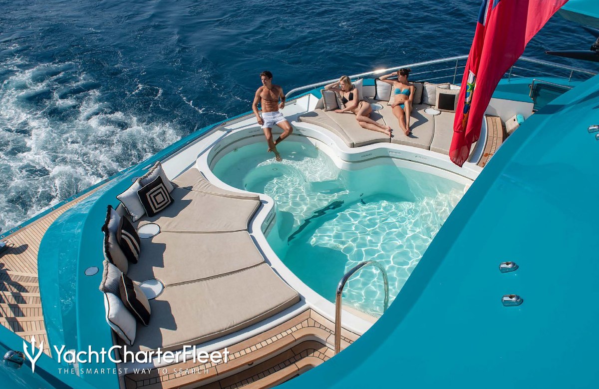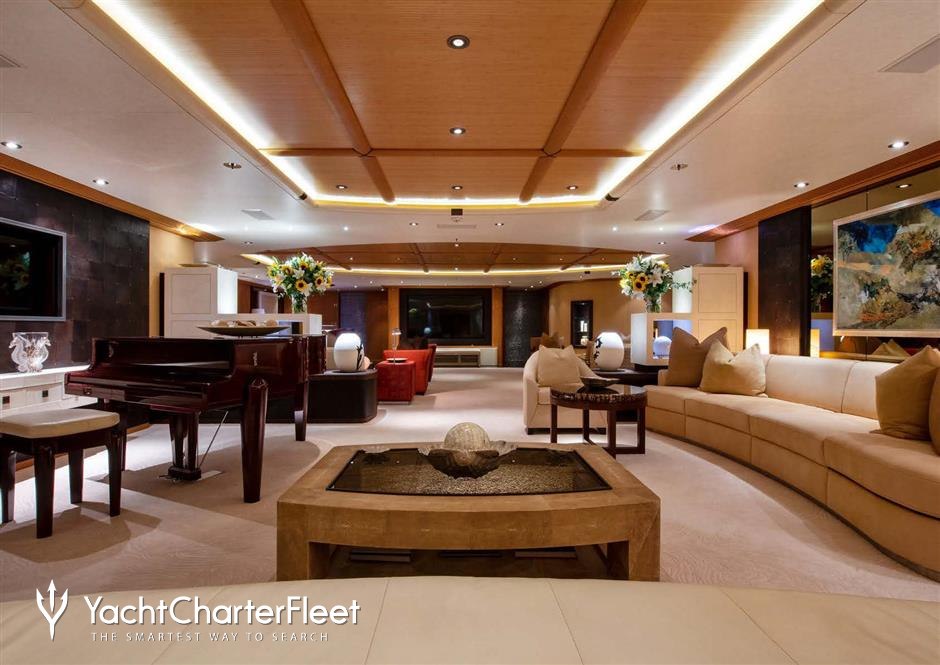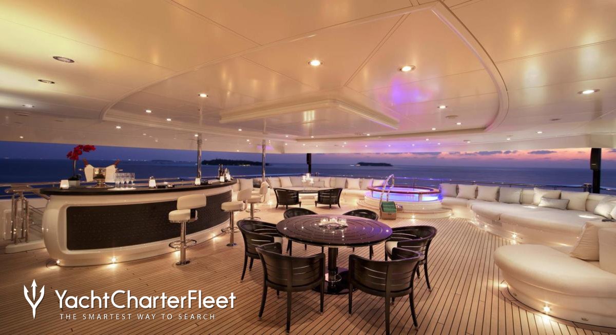 With an abundance of space and superlative amenities across her luxurious decks, you'll be spoilt for choice on a luxury yacht charter aboard Sunrays. Her features include a dancefloor, beauty salon, spa, elevator, underwater lights, beach club and gym.