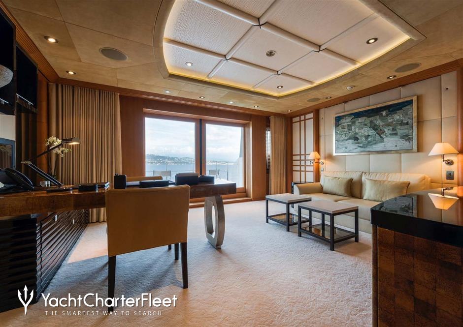 The 85.5m/280'6" 'Sunrays' motor yacht built by the Dutch shipyard Oceanco is available for charter for up to 12 guests in 9 cabins. This award winning yacht features interior styling by English designer Terence Disdale.