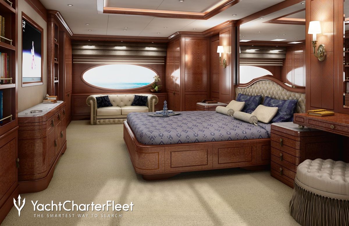 Rhino has been designed to comfortably accommodate up to 12 guests in 6 suites comprising three VIP cabins. The supremely spacious full beam master suite incorporates its own study. She is also capable of carrying up to 11 crew onboard to ensure a relaxed luxury yacht experience.