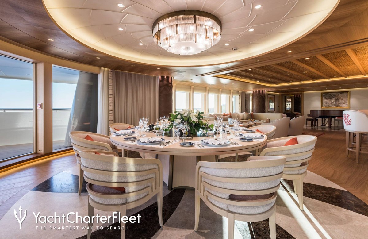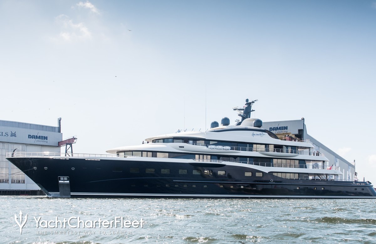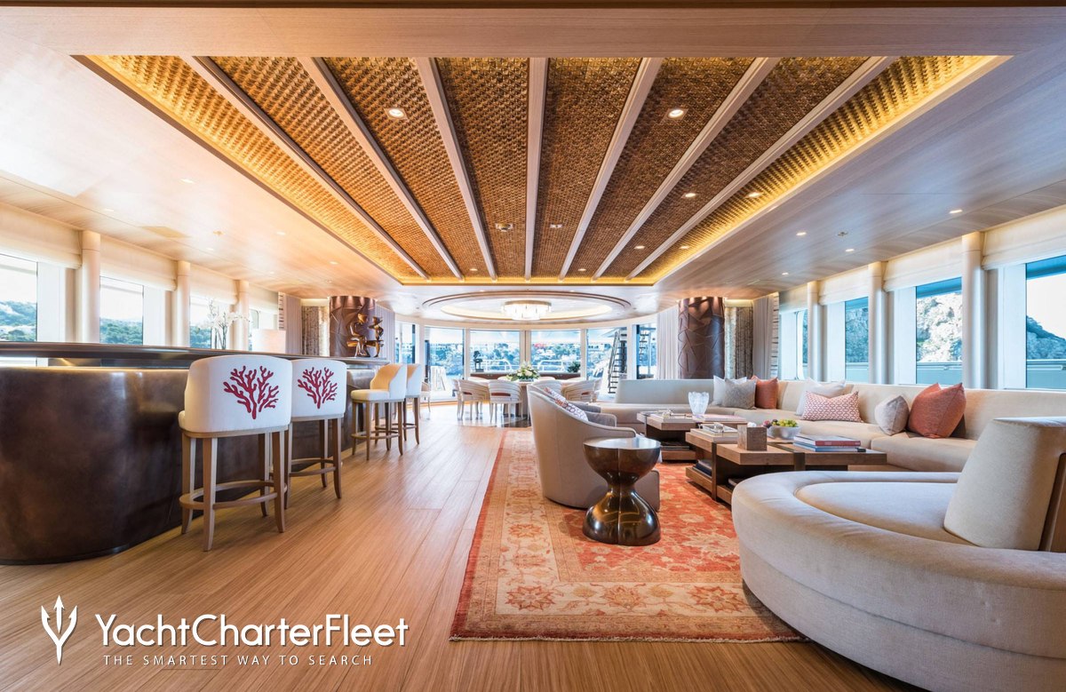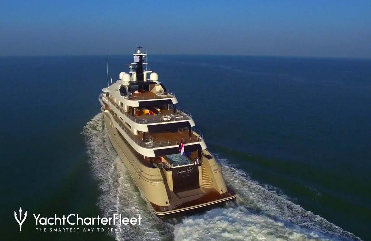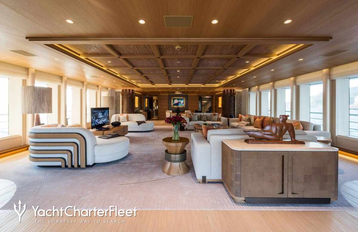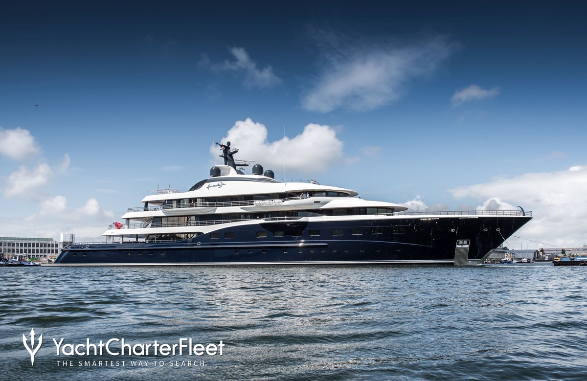 Her features include piano, spa, beauty salon, satellite communications, underwater lights, beach club, gym, deck jacuzzi, WiFi and air conditioning.