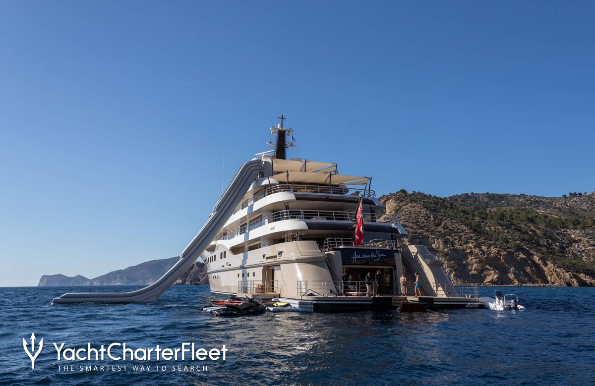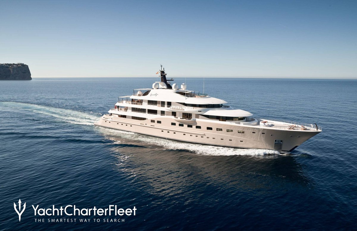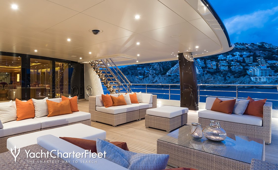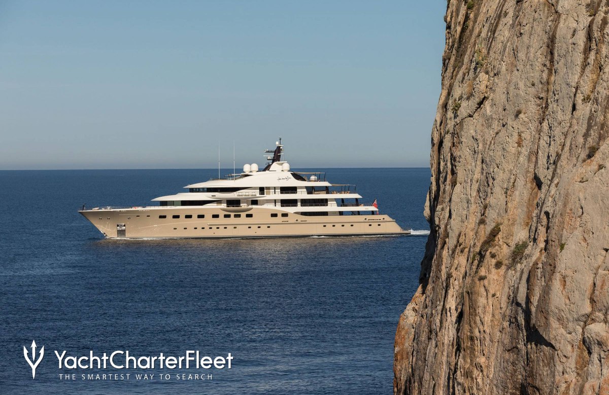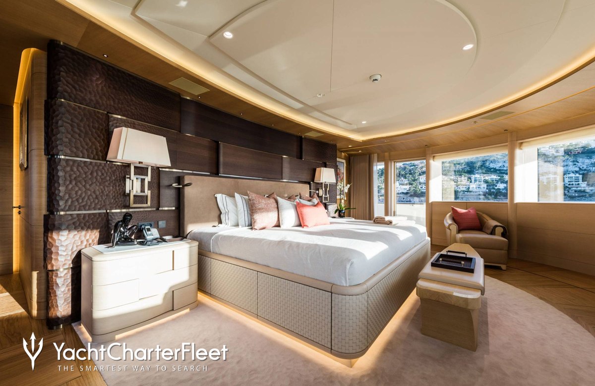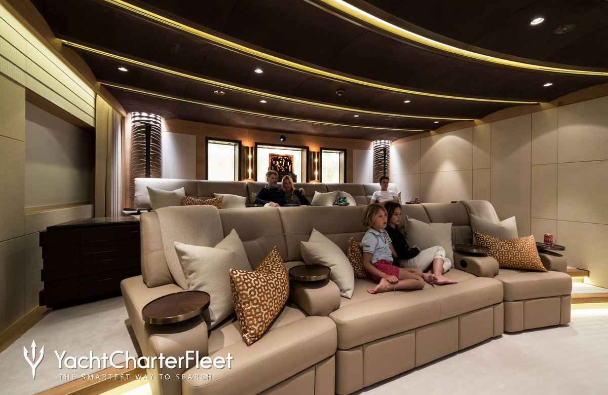 Her features include piano, spa, beauty salon, satellite communications, underwater lights, beach club, gym, deck jacuzzi, WiFi and air conditioning.