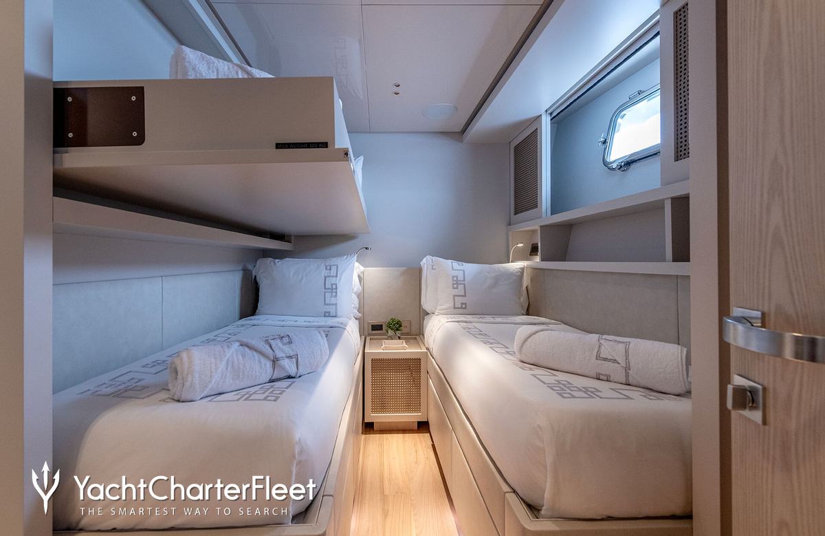 Built in 2022, Nectar offers guest accommodation for up to 9 guests in 4 suites comprising a master suite, one VIP cabin and two cabins that can operate as twins or doubles. She is also capable of carrying up to 5 crew onboard to ensure a relaxed luxury yacht charter experience.