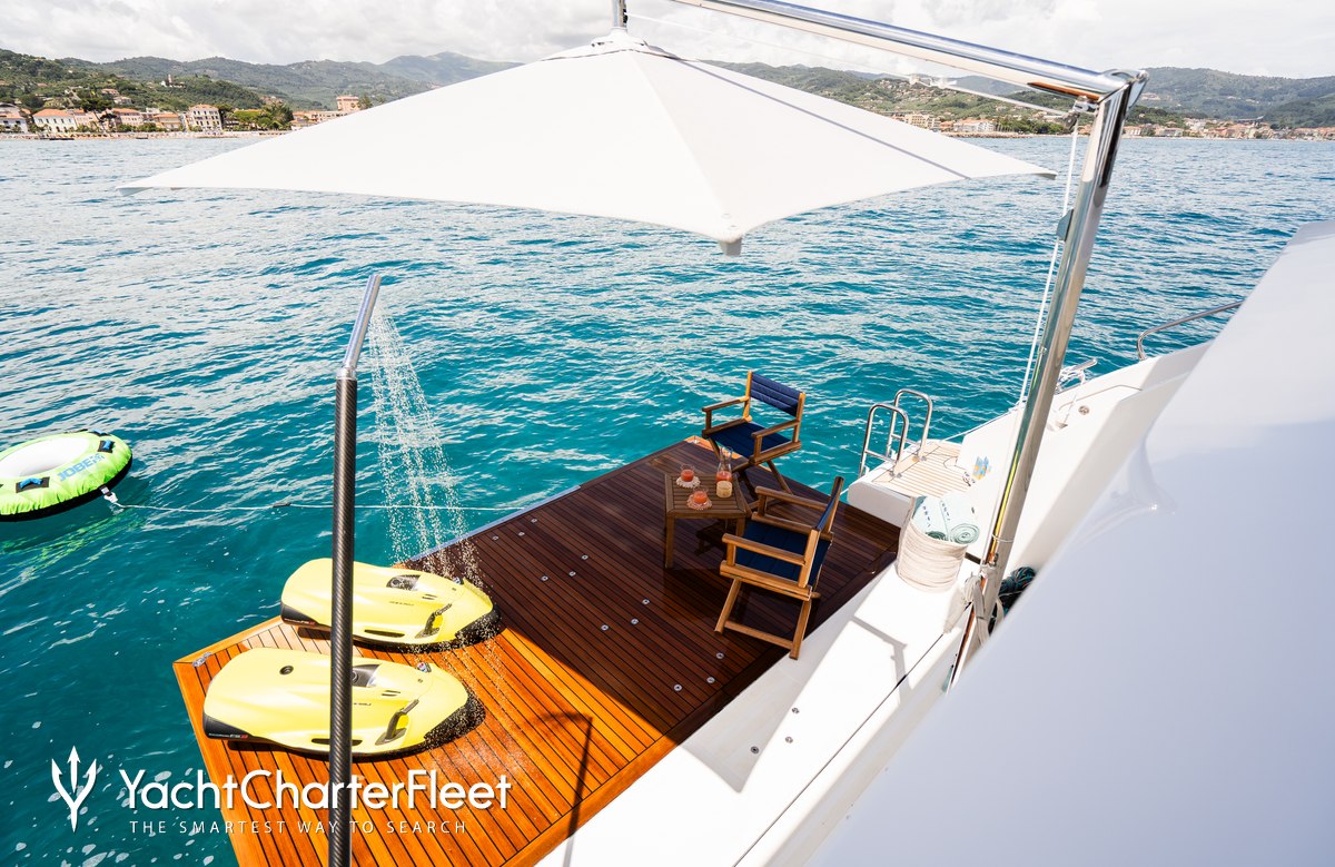 Set against the backdrop of your chosen cruising ground, you and your guests can enjoy fun on the water with the collection of water toys and accessories aboard Vesta. Principle among these is a JOBE towable toy offering fun and adventure. Another excellent feature is a JOBE waterski that are hugely entertaining whether you are a beginner or a seasoned pro. In addition there are two F5s SEABOBs, that allow you to skim along the surface or steer under the crystal water and see a variety of aquatic sea life. If that isn't enough Vesta also features wakeboards, paddleboards and snorkelling equipment. Vesta also sports a 4.45m/14'7" Williams Jet Tenders to transport you with ease.
