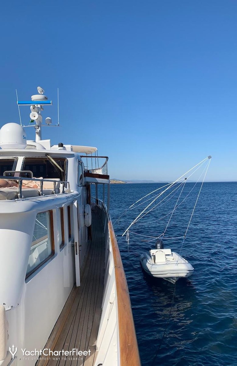 The 28.44m/93'4" 'Nina Spirit of the Wind' motor yacht built by shipyard Costaguta is available for charter for up to 8 guests in 4 cabins.