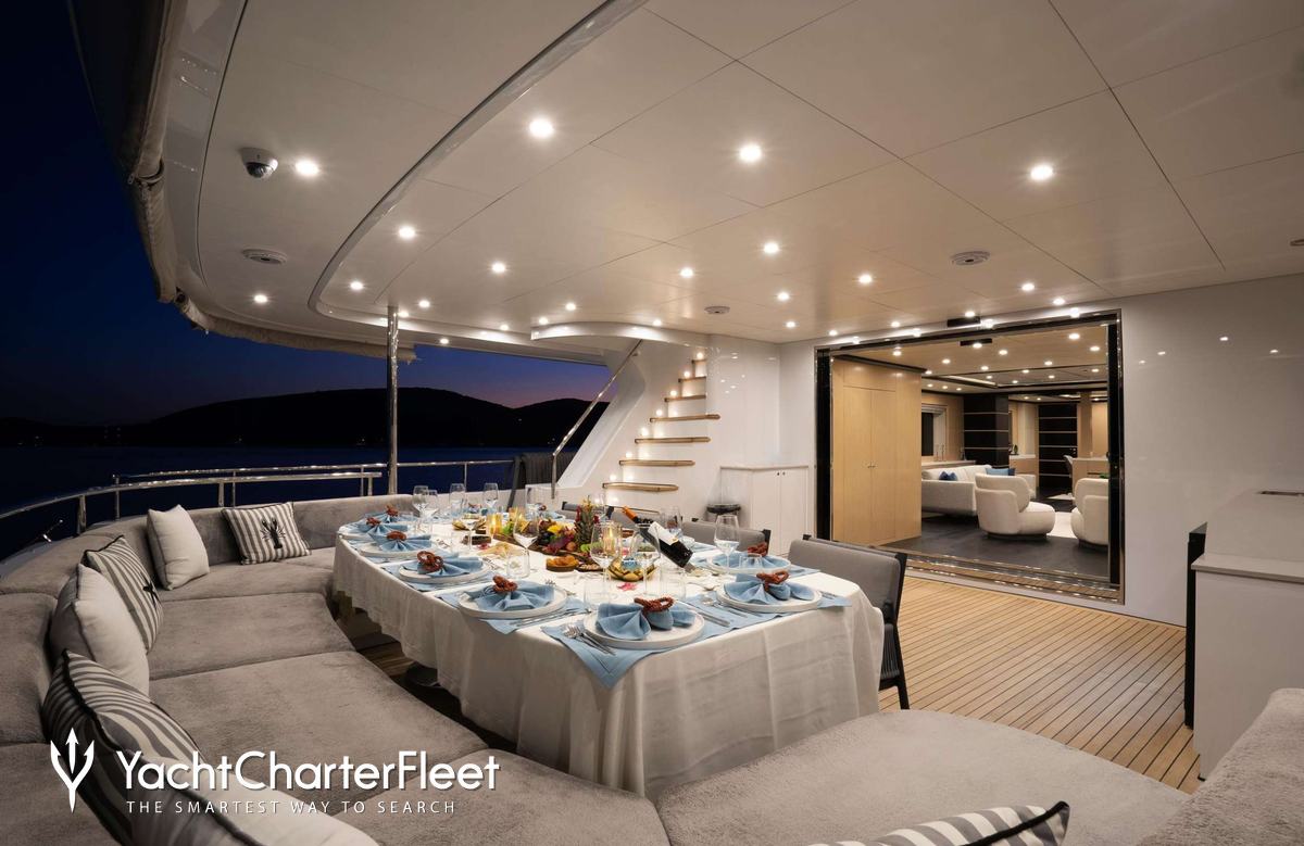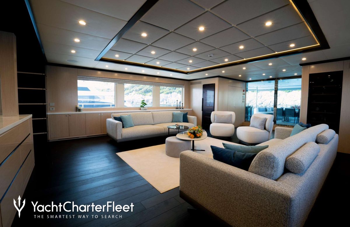 Boasting an array of sumptuous living areas laid out invitingly to create a warm and welcoming atmosphere onboard, motor yacht Princess Melda is the perfect luxury charter yacht for friends and family.