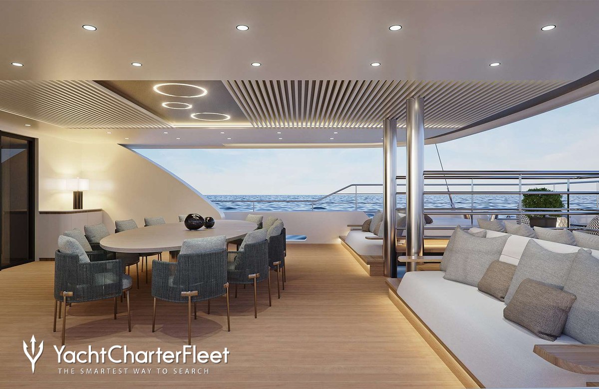 Built in 2026, AD Astra boasts a multitude of decks ideal for relaxation and entertainment indoors or outdoors, ensuring guests will live la dolce vita on the open waters. She is equipped with underwater lights, beach club and gym.