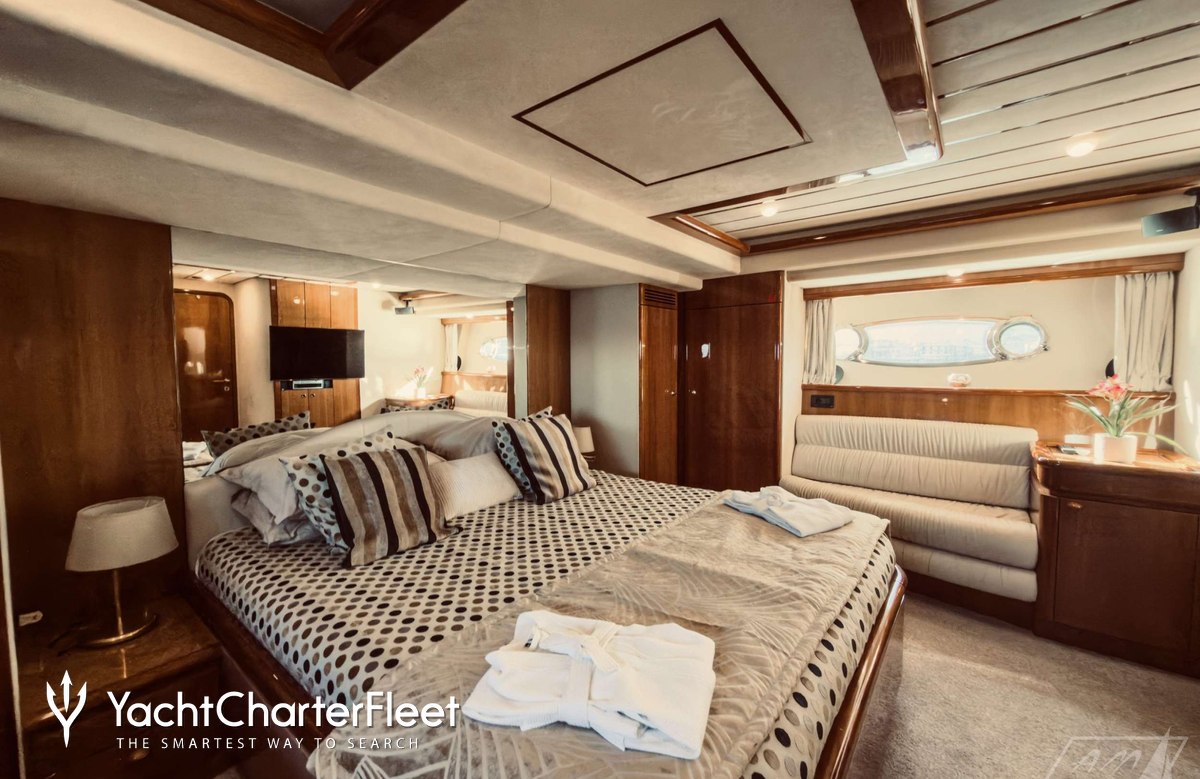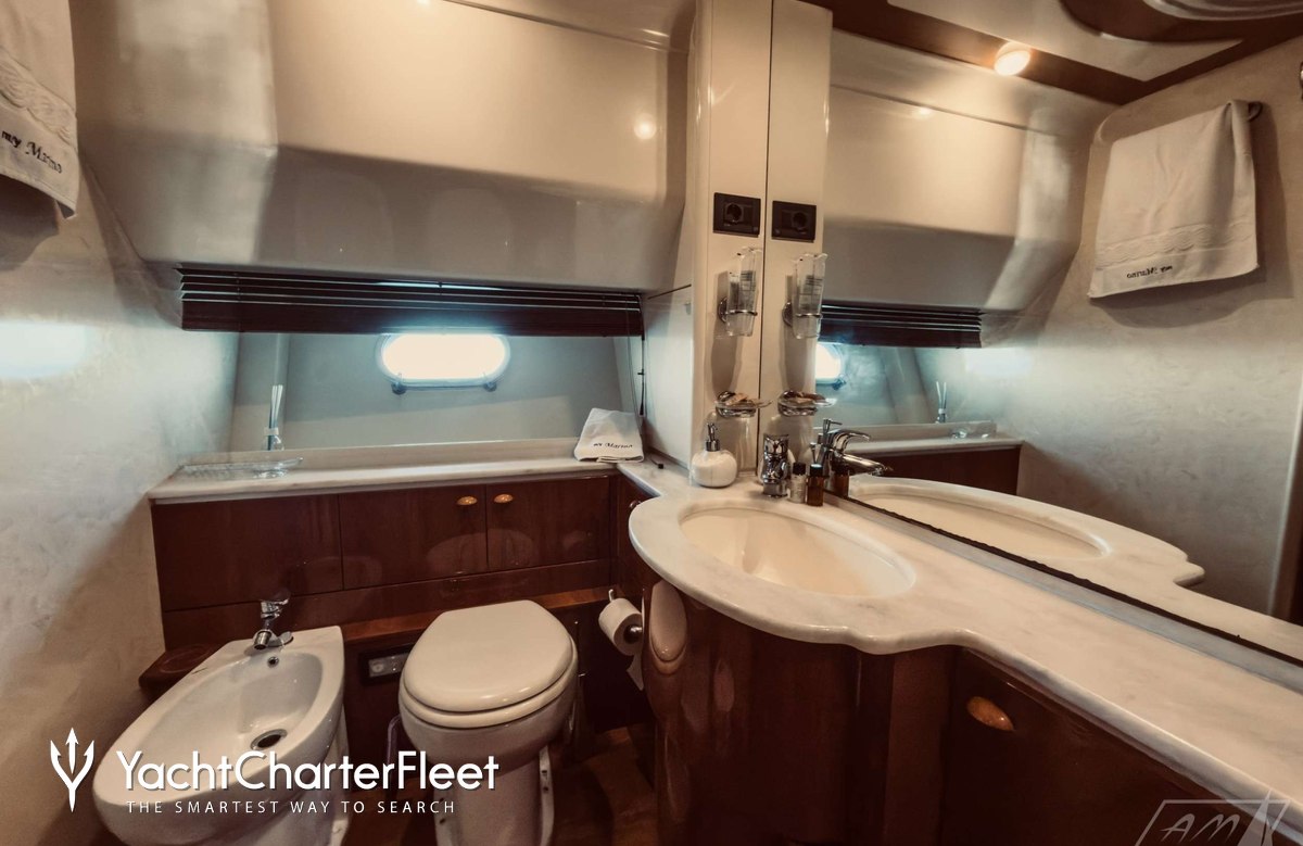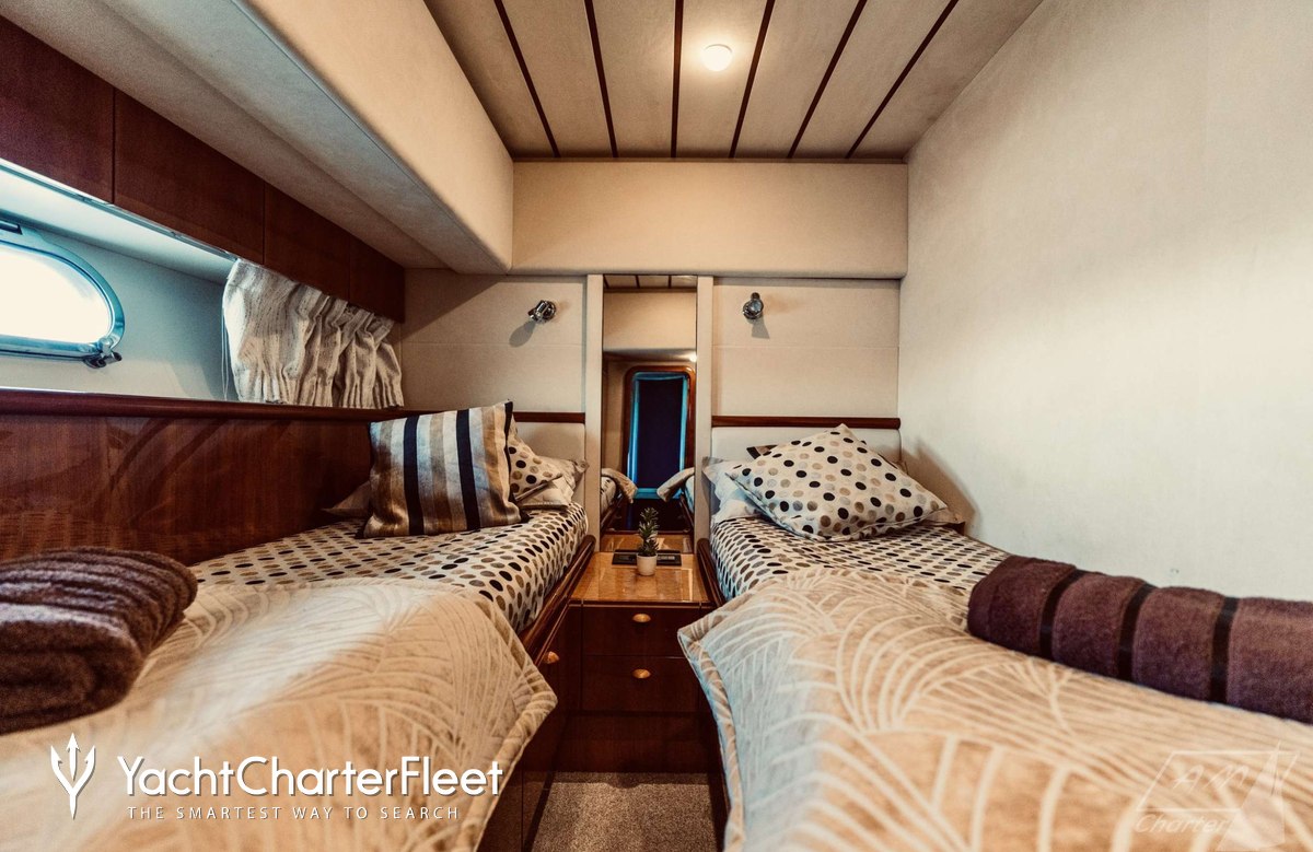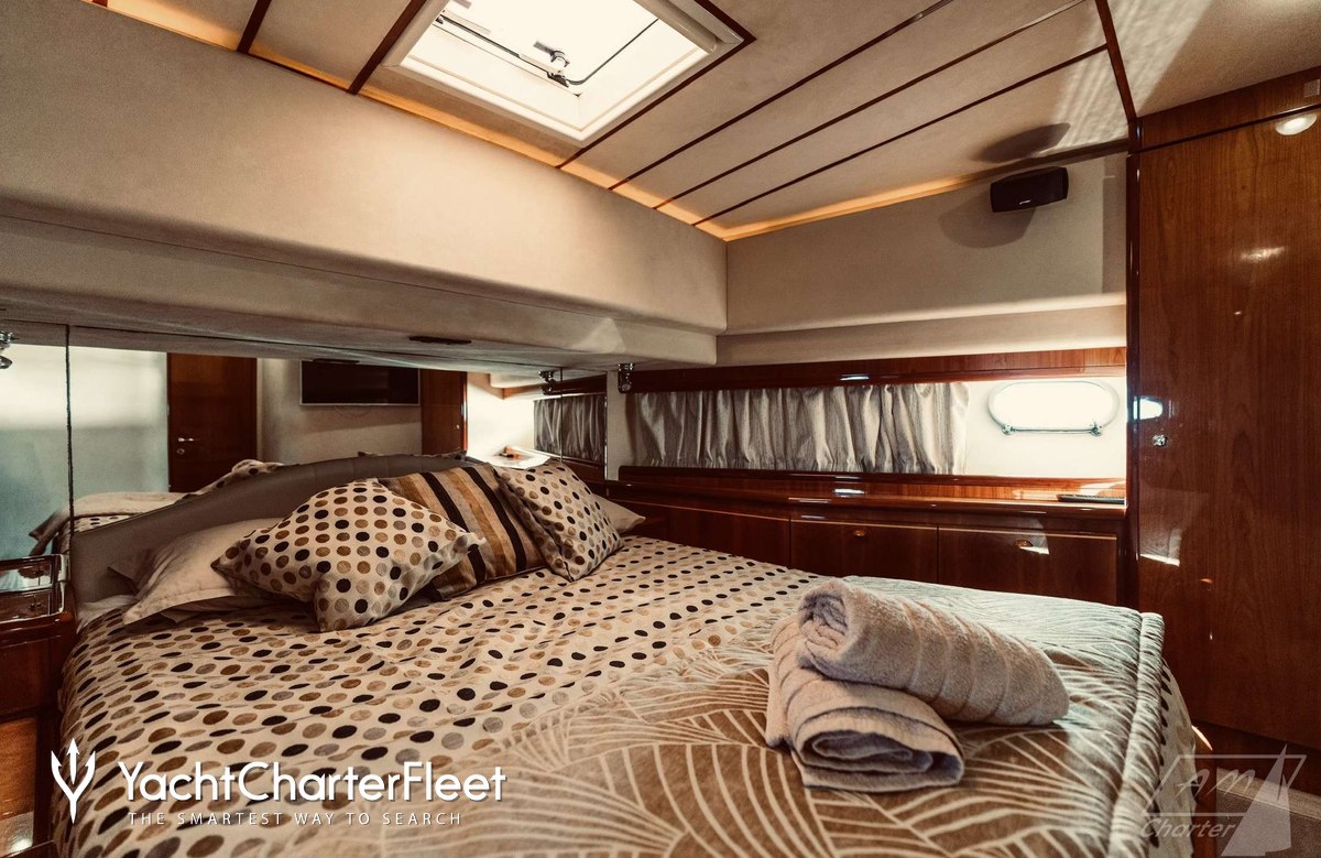 Angelica offers guest accommodation for up to 8 guests in 4 suites comprising a master suite, one VIP cabin and two twin cabins. She is also capable of carrying up to 3 crew onboard to ensure a relaxed luxury yacht charter experience.