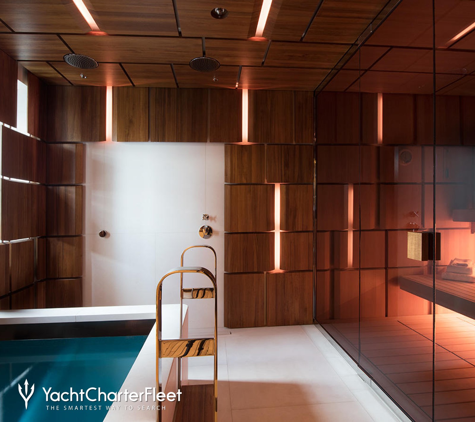 With a sauna, massage room, and a fully equipped gymnasium, time spent around the interior of superyacht CLOUDBREAK can be both restful and exciting. The 6 guest cabins on offer for up to 12 guests are similarly impressive, with each being finished in a unique style.