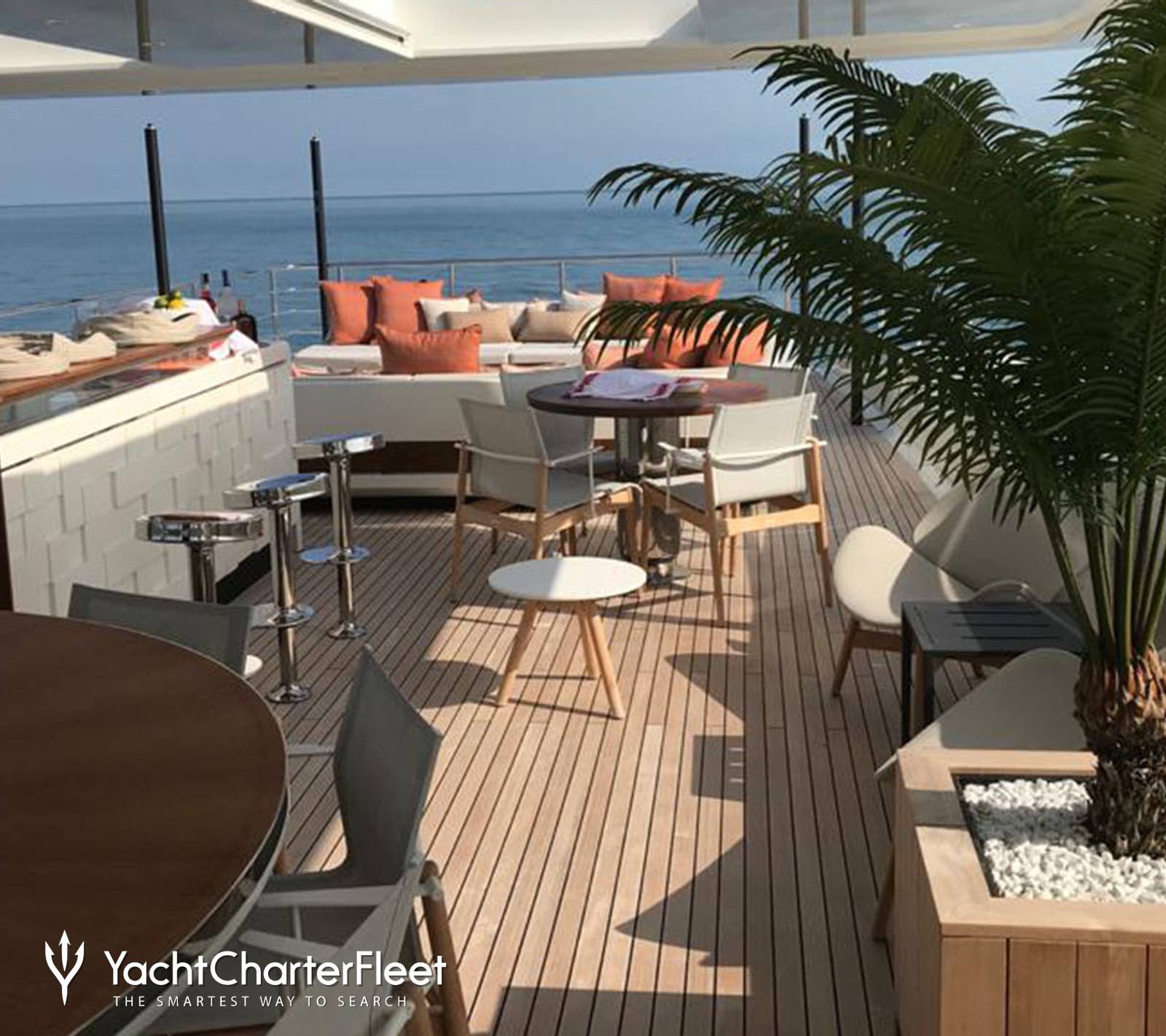 Yacht rental ANDIAMO’s exterior areas are arranged to support a mix of social time and quieter moments throughout a Mediterranean yacht charter.