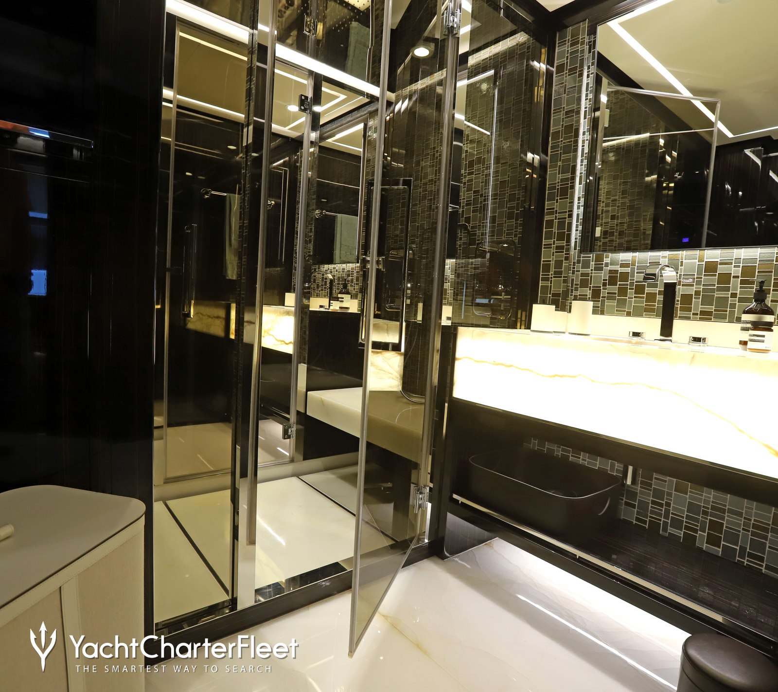Jet Skis, wakeboards, and water skis are available for higher-energy activities, while snorkeling equipment and inflatables offer alternatives for a slower-paced time at anchor. Fishing gear is also included for those looking to spend time off the back of the yacht.