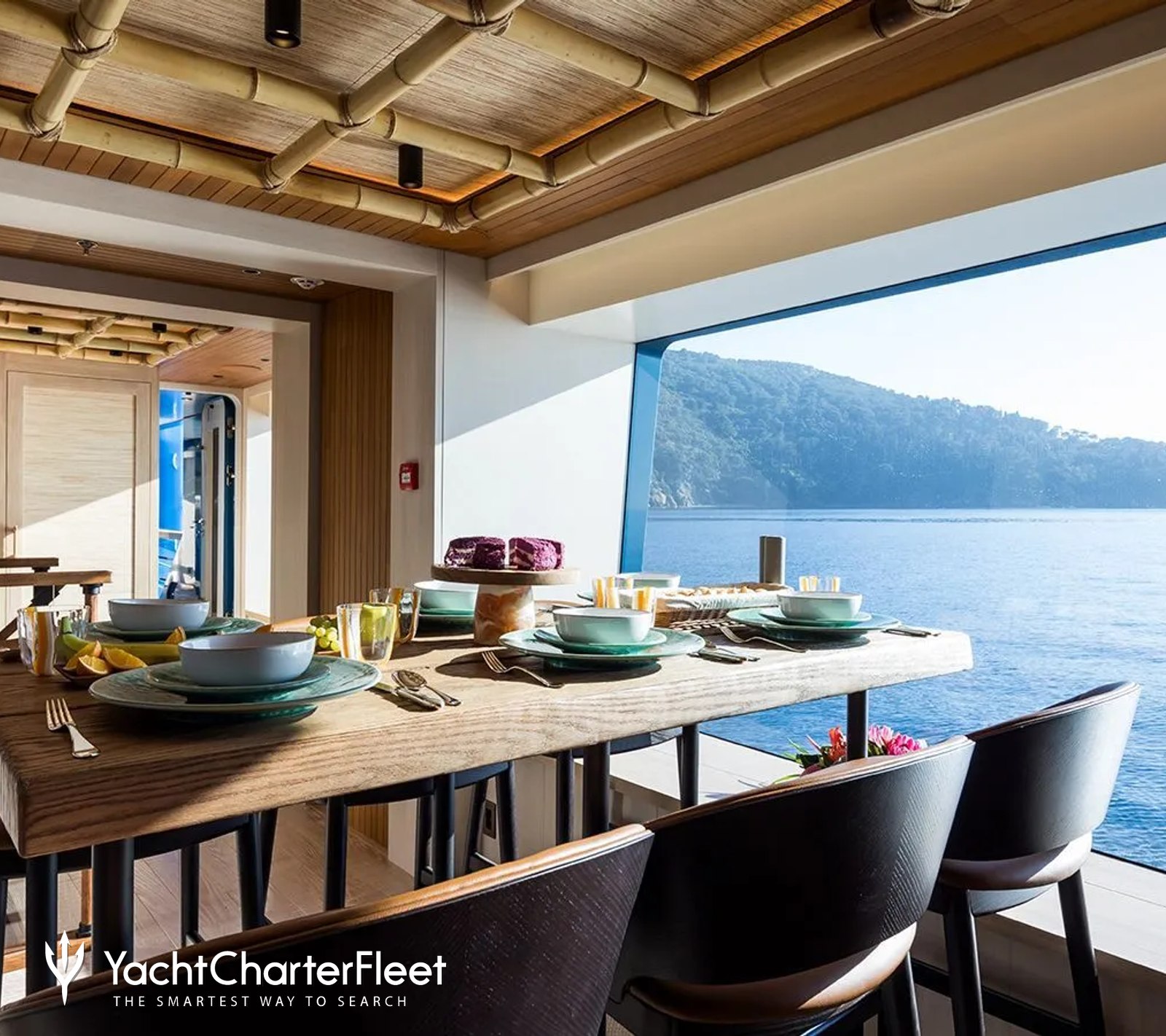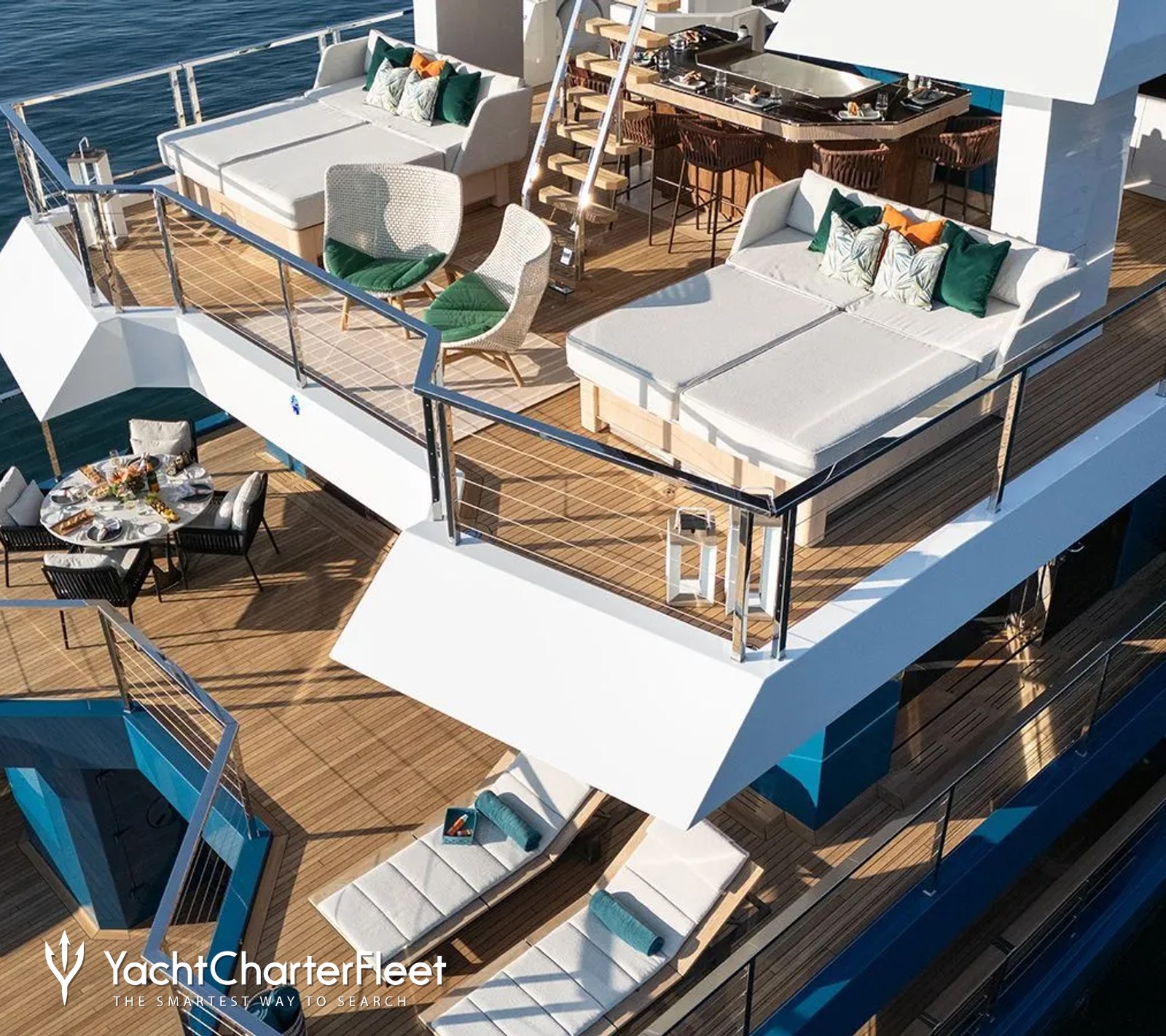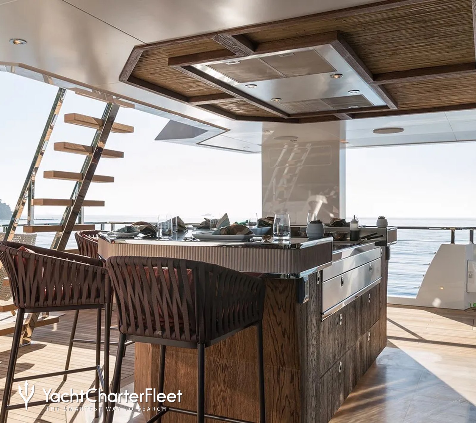 Her layout allows for a natural flow between social areas, whether for casual daytime use or more structured evenings onboard.