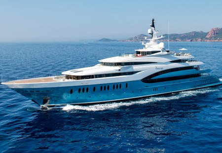 A floating masterpiece from the fleet of Oceanco yacht charters, 280.6ft (85.5m) superyacht charter SUNRAYS promises a sublime charter experience wrapped in unapologetic opulence. Boasting an expansive nine-cabin layout for 12 charter guests, the voluminous interior, penned by Terence Disdale, boasts a refined yet contemporary ambiance. Her selection of premium onboard amenities includes a state-of-the-art cinema, an extensive beach club, a hammam, and dedicated spa facilities.