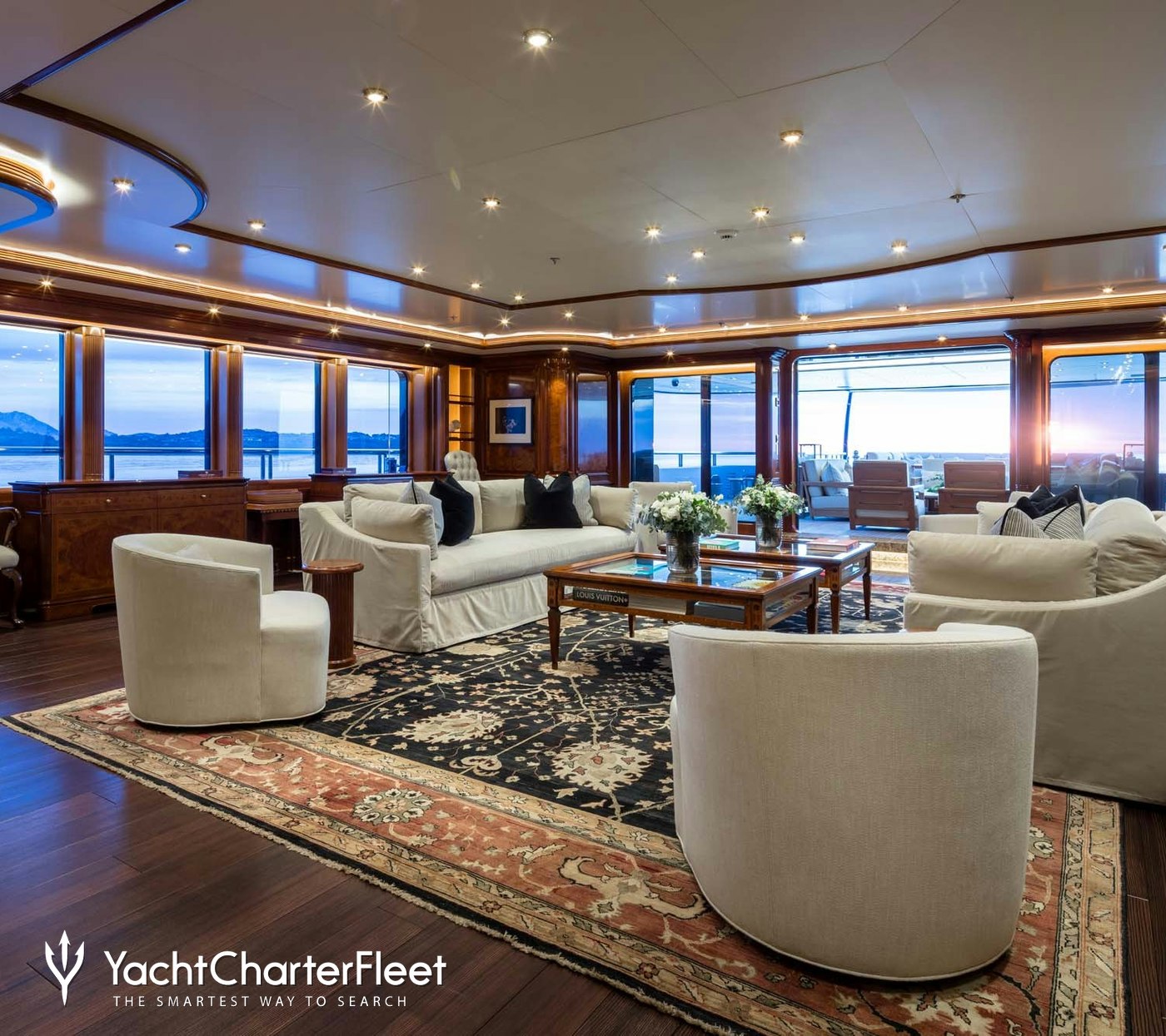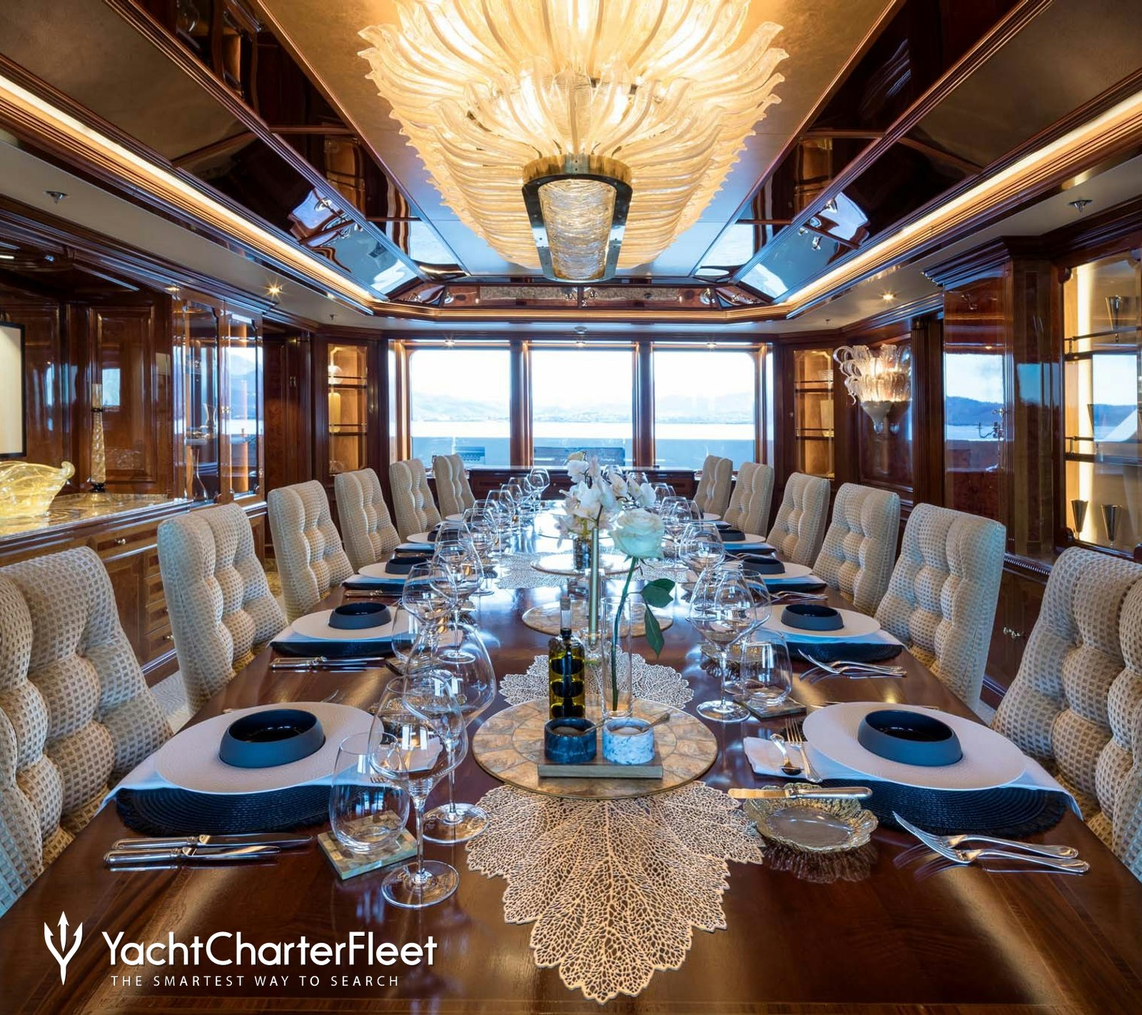 Also hosting a formal dining area for intimate meals, plus premium health and wellness amenities, including a spa, steam room, sauna, gym, and a massage room, charter guests are kept busy throughout the day and night.