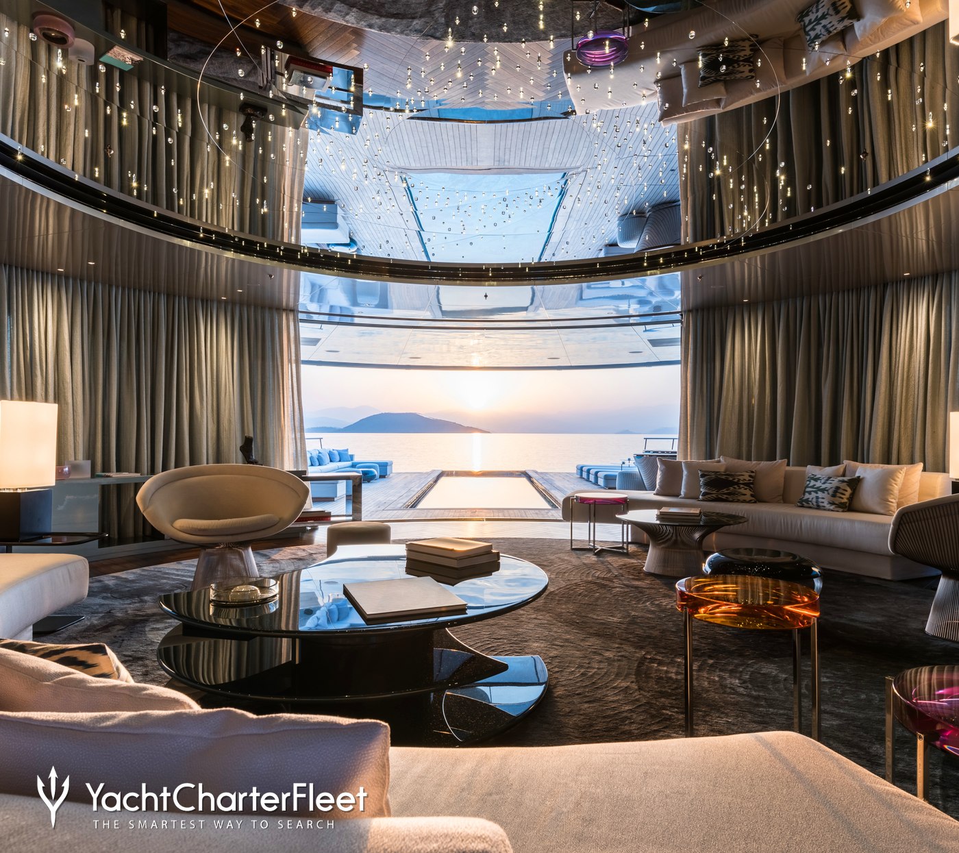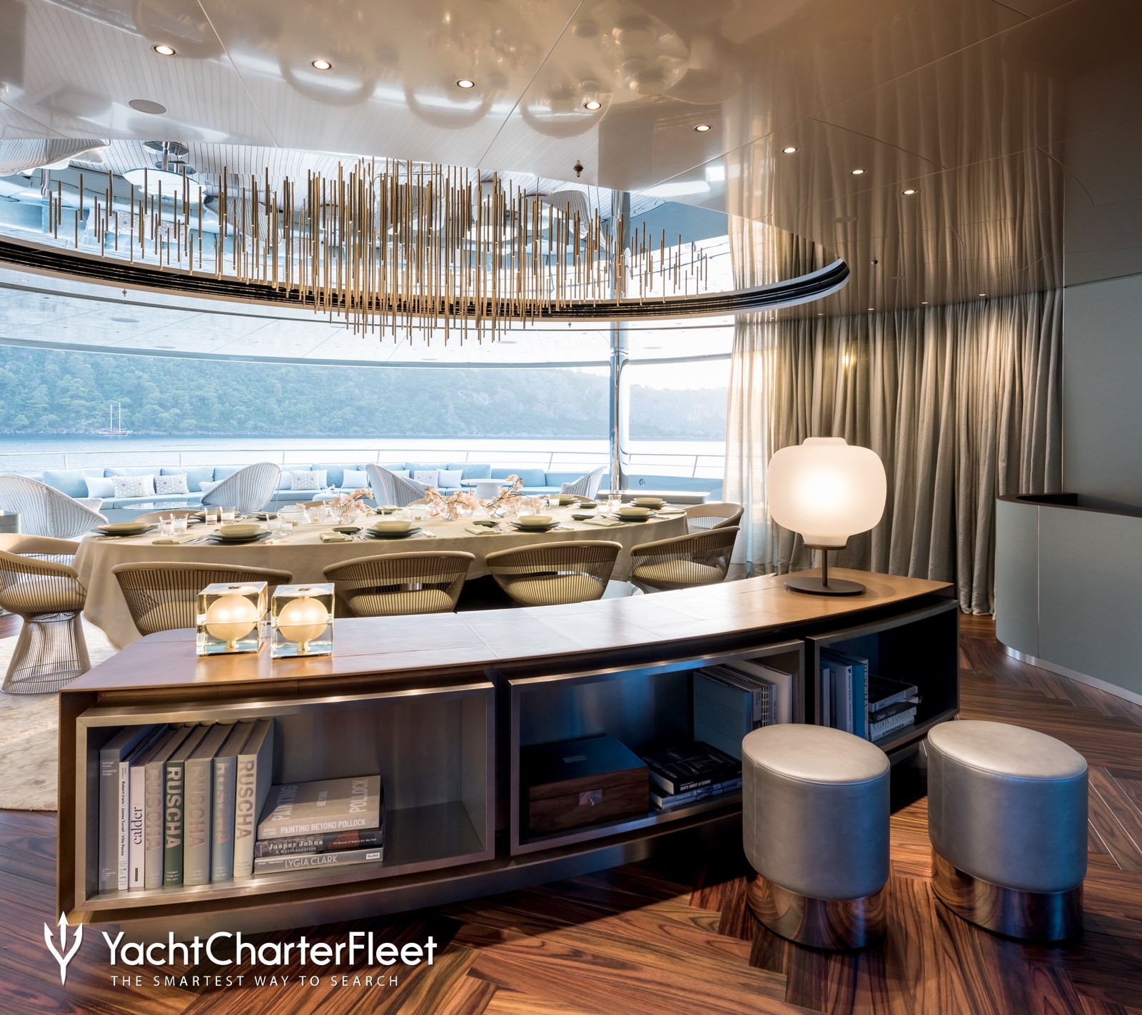 Huge expanses of glass with hidden window frames draw attention to the world outside and keep charter guests in visual contact with the ocean, while high-quality finishes, unrivalled attention to detail and luxurious materials abound throughout. For example, there are lighting fixtures on board with up to ten different colours, lens types and positions.