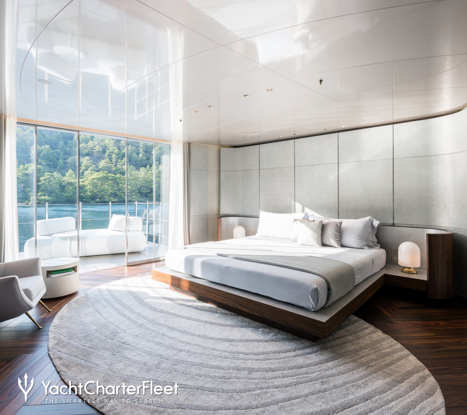 The yacht can comfortably sleep up to 12 guests in six staterooms, including a master suite, a VIP suite with a private balcony and four large guest suites. There is also unprecedented facilities for her 26 crew members.